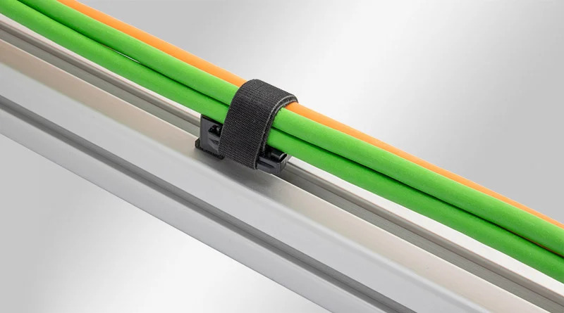 Os novos suportes de fita de velcro da ICOTEK oferecem flexibilidade máxima! Devido ao seu design inovador de duas peças (KBH-R), a base onde o cabo (parte superior) é apoiado pode ser fixada paralela ou a 90° ao ângulo ao perfil. Além disso, se os cabos forem adicionados ou removidos posteriormente, os suportes podem ser removidos facilmente.